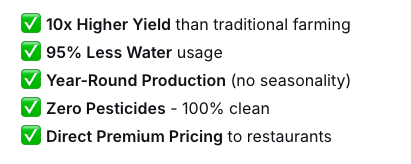 Testimonial:”Each distribution center acts as a mini-farm, ensuring every restaurant receives the freshest herbs and microgreens daily.”