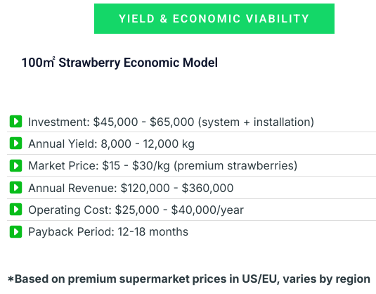 Achieves premium strawberries with Brix 12+ through environmental control.
