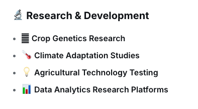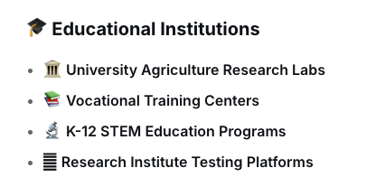 "We introduced the AgrioSphere Voyager Package as a teaching platform for our Agricultural Science students. The system was deployed within 3 weeks, and students can now collect real-time data on 40+ environmental and growth parameters." Key Results: Deployment Time: 3 weeks (fully remote guidance) Data Collection: Saves 15 hours of manual recording weekly Teaching Efficiency: 70% reduction in experiment preparation time Student Feedback: 93% found the technology easy to master Application: Undergraduate Plant Science courses, Graduate research projects, Agri-tech innovation workshops